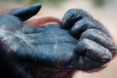He led me through a maze of pale green hallways, lit with sickly fluorescents, and I tried to imagine her hand the way it might be. Black, rough fingers that stretched too long under orange, matted fur. “An orangutan. She has black hair though,” I said.